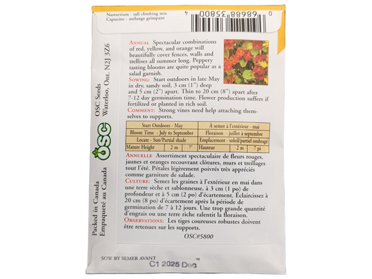 Nasturtium Tall Climbing Mixed Colors