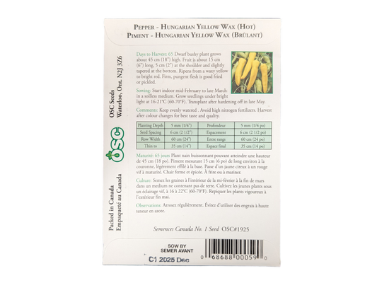 Pepper Hungarian Yellow Wax (HOT)