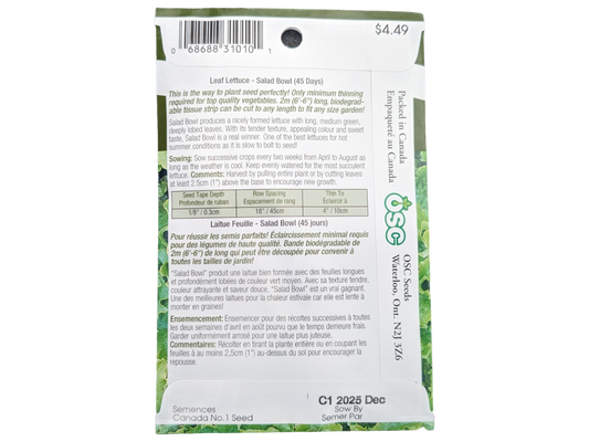 Seed Tape Lettuce Salad Bowl