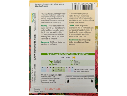 Zinnia Cactus Flowered Mixed Colours