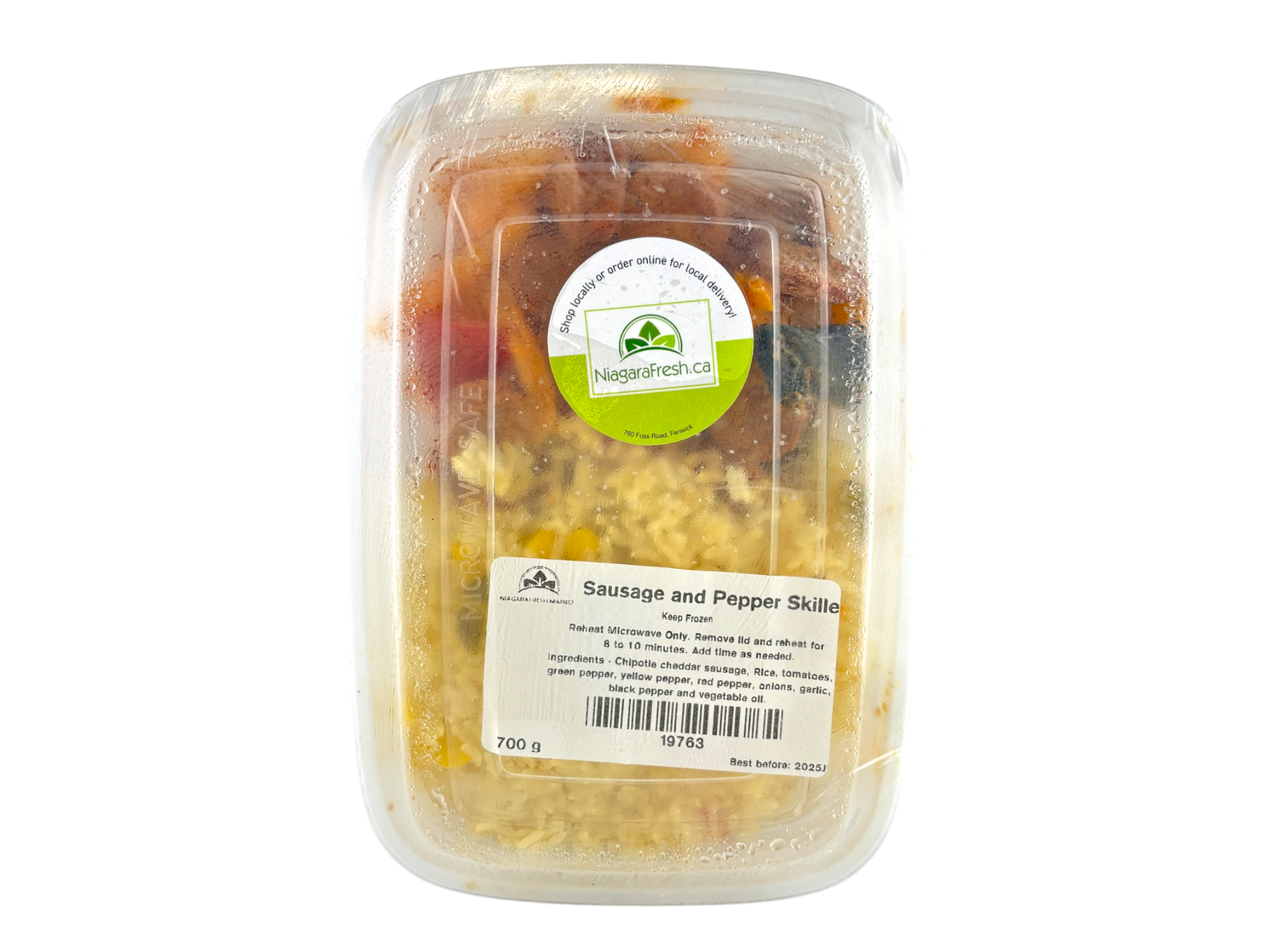 Ingredients: Chipotle Cheddar Sausage, Rice, Red Pepper, Yellow Pepper, Green Pepper, Onions, tomatoes, garlic, black pepper and vegetable oil.